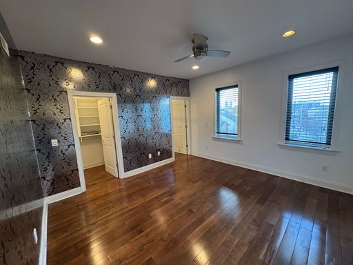 Beautifully maintained condo in Poplar. This home features assigned indoor parking and a private balcony that extends from the spacious living and dining area. Upgrades include a new Wi-Fi–enabled washer and dryer and an energy-efficient HVAC system installed in 2021. Throughout the home, you’ll find custom closets and hardwood floors. The custom wallpaper was designed specifically for the current owner but can be easily removed if preferred. The unit offers two generously sized bedroom suites, each with a well-appointed full bath, plus an additional half bath in the hallway. The updated kitchen provides ample cabinet space and a large countertop. Conveniently located near Broad Street and Fairmount, the property provides easy access to neighborhood amenities, Center City, and an Aldi within walking distance.