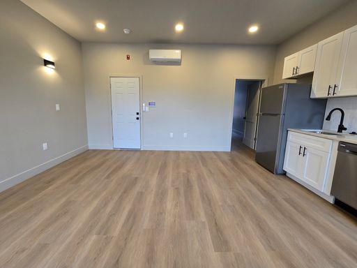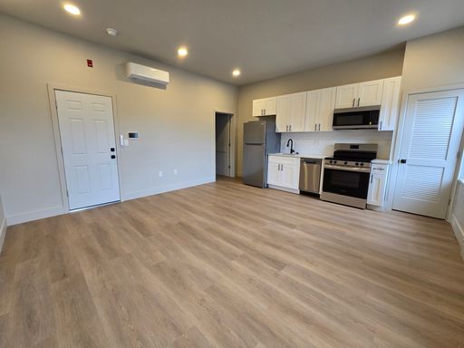 Each residence features hardwood floors, in-unit washer and dryer, central air, stainless steel appliances, and modern finishes throughout. With large windows and abundant natural light, every apartment offers a bright and open feel designed for contemporary city living.
